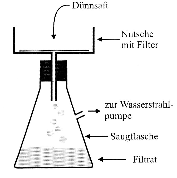 verteilt. Jede Gruppe filtriert ihren Dünnsaft (Nutsche) mit Hilfe einer